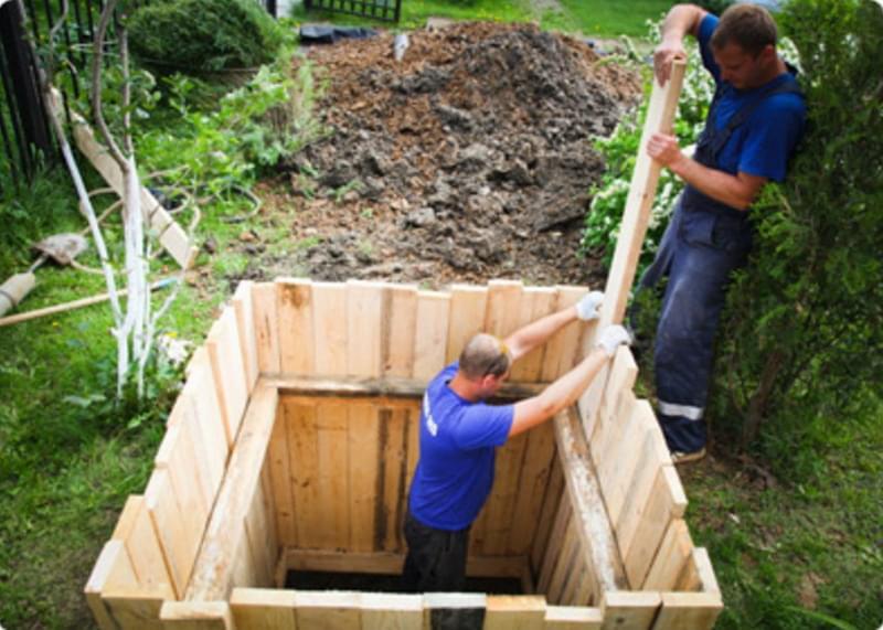 Выкапывание котлована под кессон, монтаж и опускание насоса в скважину