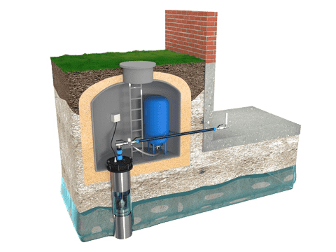 Полипропиленовая или металлическая бочка (или ЖБ кольца), закапываемая в землю на устье скважины ниже глубины промерзания для размещения автоматики (реле, монометр, гидробак, первичный ввод и т.д.)